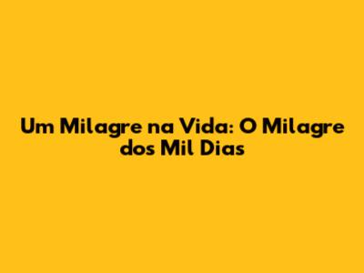 Um Milagre Na Vida: O Milagre Dos Mil Dias