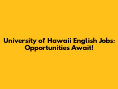 University Of Hawaii English Jobs: Opportunities Await!