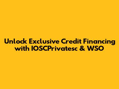 Unlock Exclusive Credit Financing With IOSCPrivatesc & WSO