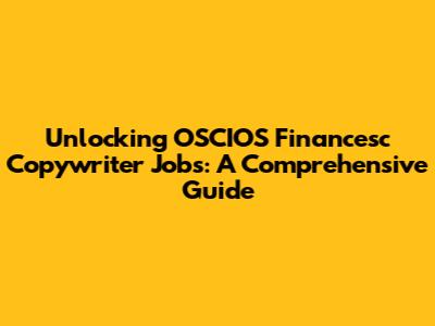 Unlocking OSCIOS Financesc Copywriter Jobs