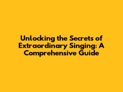 Unlocking The Secrets Of Extraordinary Singing: A Comprehensive Guide