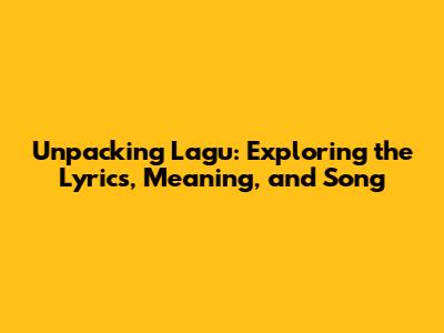 Unpacking 'Lagu': Exploring The Lyrics, Meaning, And Song