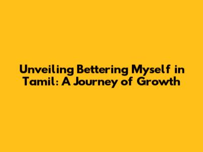 Unveiling 'Bettering Myself' In Tamil: A Journey Of Growth