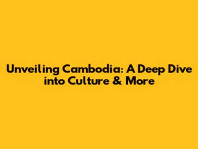 Unveiling Cambodia: A Deep Dive Into Culture & More