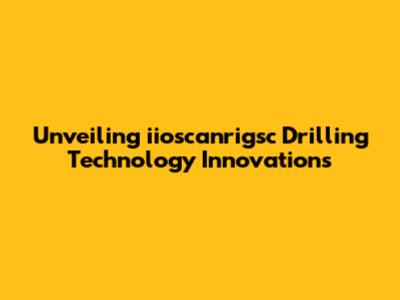 Unveiling Iioscanrigsc Drilling Technology Innovations