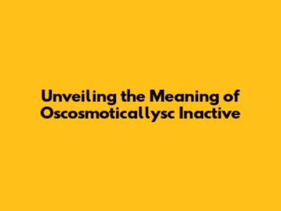 Unveiling The Meaning Of Oscosmoticallysc Inactive