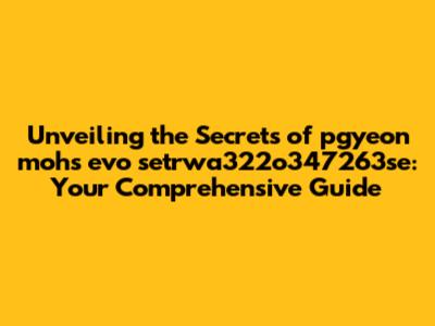 Mastering pgyeon mohs evo setrwa322o347263se: Tips and Tricks