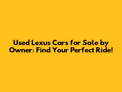 Are you on the hunt for used Lexus cars for sale by owner? You've landed in the right spot! Buying a used car, especially a luxury brand like Lexus, can be a smart way to get a high-quality vehicle without the hefty price tag of a new one. In this article, we'll dive into everything you need to know to navigate the world of used Lexus cars, helping you find the perfect ride that fits your needs and budget.