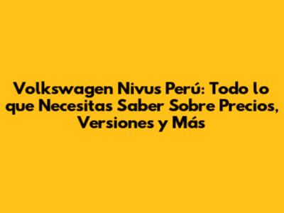 En resumen, el Volkswagen Nivus es una excelente opción para aquellos que buscan un SUV coupé compacto con un diseño atractivo, tecnología avanzada y características de seguridad completas. Su diseño moderno, su interior sofisticado y su eficiente rendimiento lo convierten en una opción atractiva para una amplia gama de conductores. Si estás buscando un coche que combine estilo, funcionalidad y seguridad, el Nivus es definitivamente una opción a considerar. Recuerda que los precios pueden variar dependiendo de la versión, los extras y el concesionario. Visita un concesionario oficial de Volkswagen en Perú para obtener información detallada sobre los precios, las versiones disponibles y las opciones de financiamiento. No dudes en programar una prueba de conducción para experimentar de primera mano las características del Nivus. ¡Esperamos que esta guía te haya sido de gran ayuda para tomar una decisión informada sobre la compra de tu nuevo Volkswagen Nivus!