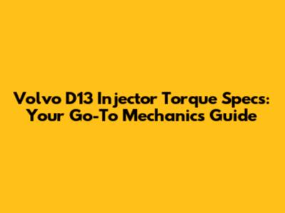 Volvo D13 Injector Torque Specs: A Mechanic's Guide