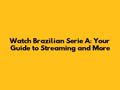 Watch Brazilian Serie A: Your Guide To Streaming And More