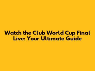 Where to Watch the Club World Cup Final Live