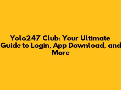 Yolo247 Club: Login, App Download, And Guide