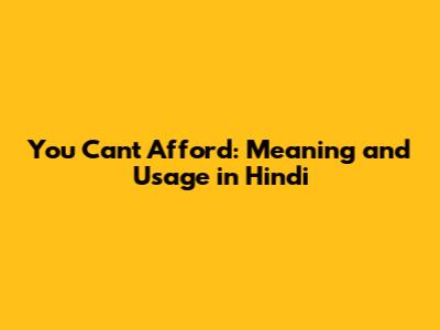 You Can't Afford: Meaning And Usage In Hindi