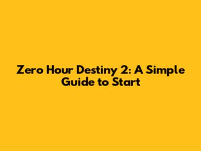 Zero Hour Destiny 2: A Simple Guide To Start